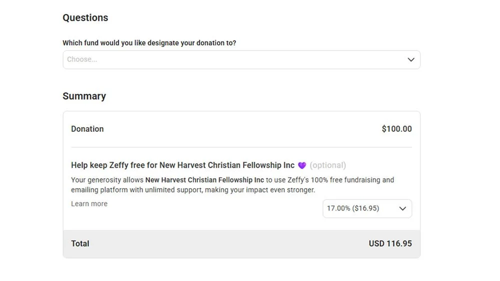 We use Zeffy to process donations because they are the only payment processor that charges no fees to non-profits or their donors. In fact, when you use a credit card, Zeffy will even pay the 3-4% credit card fee on our behalf. Thus, the amount you donate is the amount we receive.