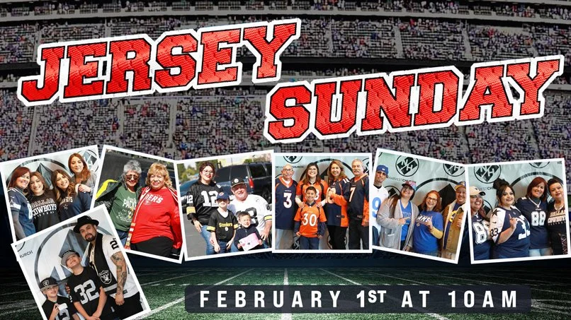 Hey Church, we all know that Super Bowl Sunday is coming. We want to invite you to support your team by wearing your NFL jerseys or attire to church on Sunday, February 1st for Jersey Sunday.